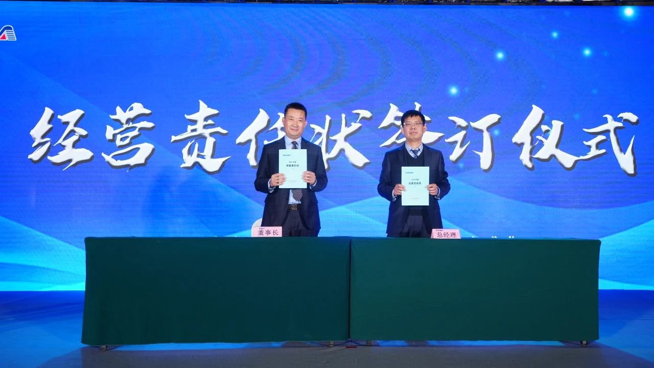現場,總經理與董事長,國內外市場負責人、各重點項目負責人與總經理,分別簽署2024年責任狀。副總經理王世軍代表管理團隊做出表態(tài),堅決高質高量完成生產經營全年任務指標。