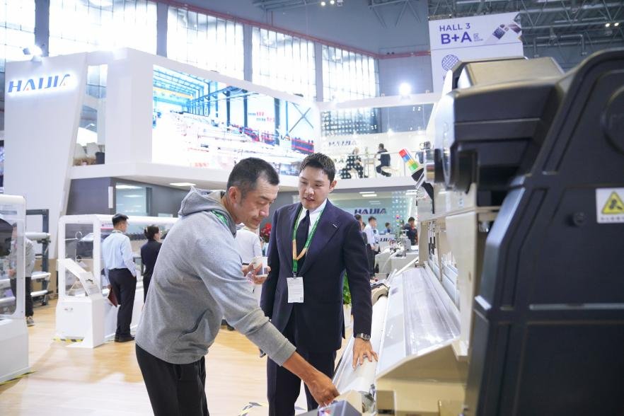 海佳噴氣織機(jī)也進(jìn)行了全面創(chuàng)新升級,本次展出的HA-9030N系列噴氣織機(jī)長期運轉(zhuǎn)更加可靠性,高速運轉(zhuǎn)同時更加節(jié)能,能滿足各種高品質(zhì)織造,品種適應(yīng)性更強,現(xiàn)場吸引海內(nèi)外諸多客戶。