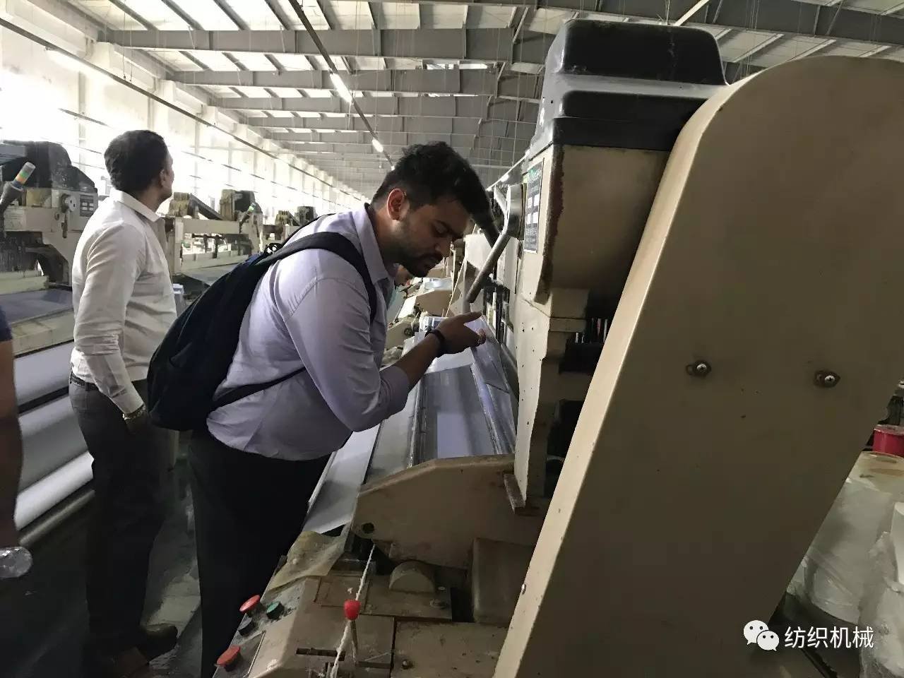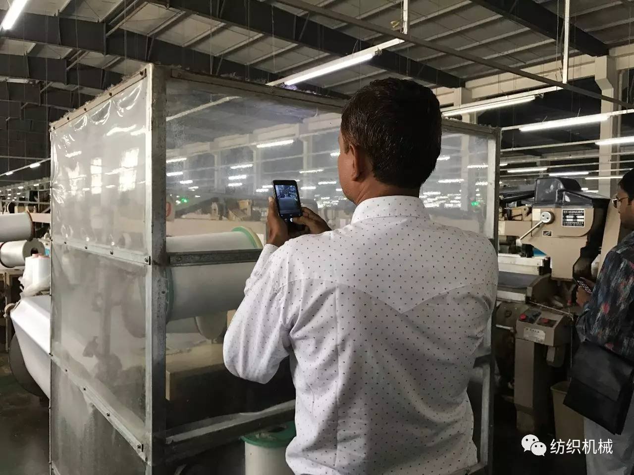 一進聚潤車間,印度代表們就被上千臺織機同時運行的車間震撼到了。紛紛拿出手機拍照,錄制視頻。